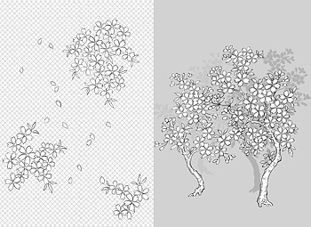 Location: Home > Vector > Vector Plant > Vector line drawing of flowers--41Cherry, classical background)