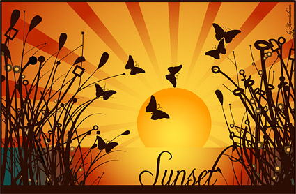Location: Home > Vector > Vector landscape > Under the sunset silhouettes