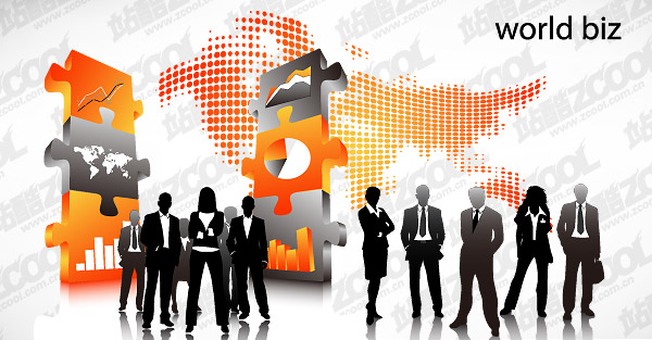 eps format, with jpg preview, the crucial words: vector silhouette business people, business, the world map, puzzles, white-collar workers, managers, successful people, statistics, data