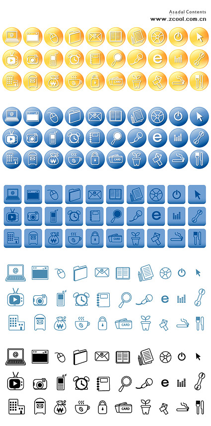 ai formats, including jpg preview, keyword: Vector icon, laptop computers, the mouse, folders, System icon, books, google browser, shut down the mouse pointer, notebook, video, pictures, cameras, mobile phones , contacts, time, alarm clock, a magnifying glass, a microphone, volume, sound waves, music, settings, maintenance, posting boxes, mailboxes, mailbox, purse, coffee cup, lock, confidentiality, bank cards, credit cards, flower pots, smoke, knife and fork, Vector material
